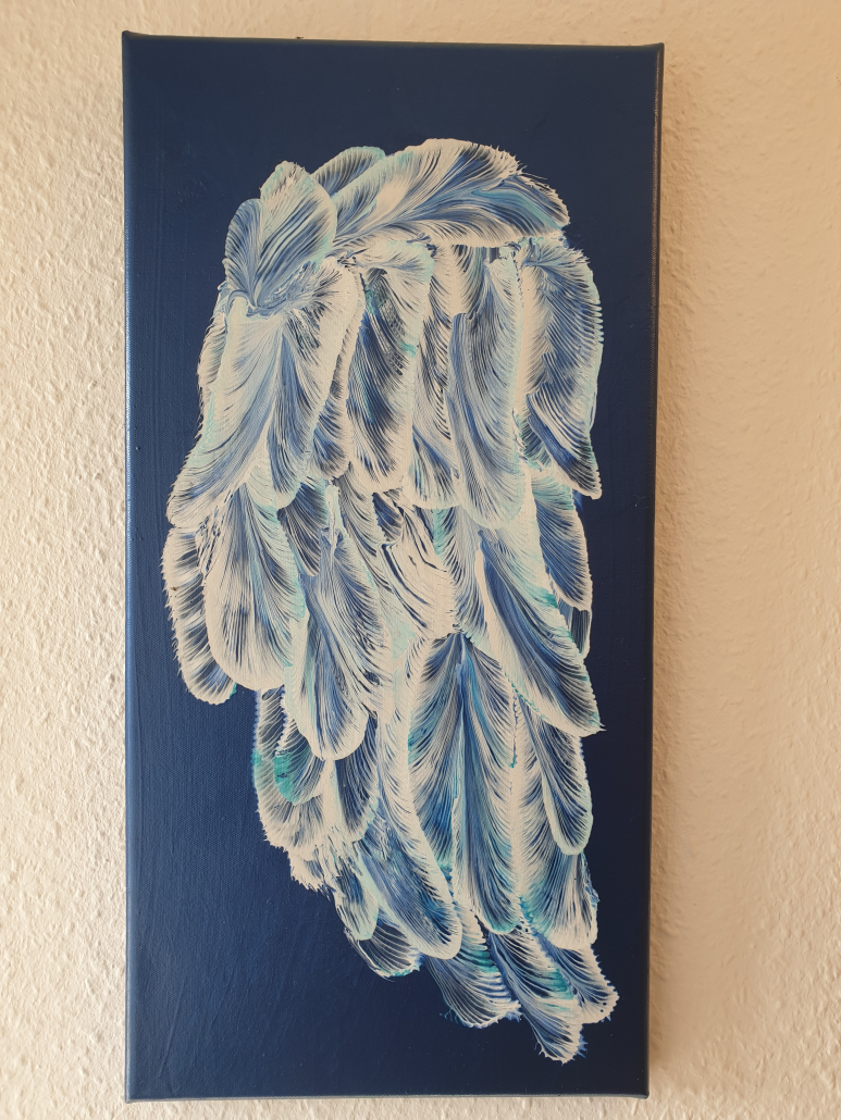 Auf tiefblauem Hintergrund entfaltet der Flügel des Erzengels Michael seine reinigende und schützende Kraft.