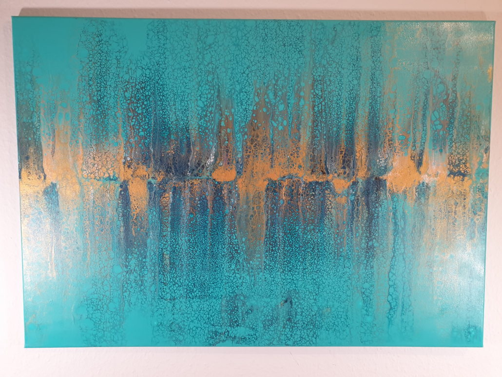 Türkis ist die farbliche Verbindung des Herzchakras mit dem Halschakra. Hier sprühen die Energien der offenen, lichtvollen Kommunikation in goldenem Glanz .